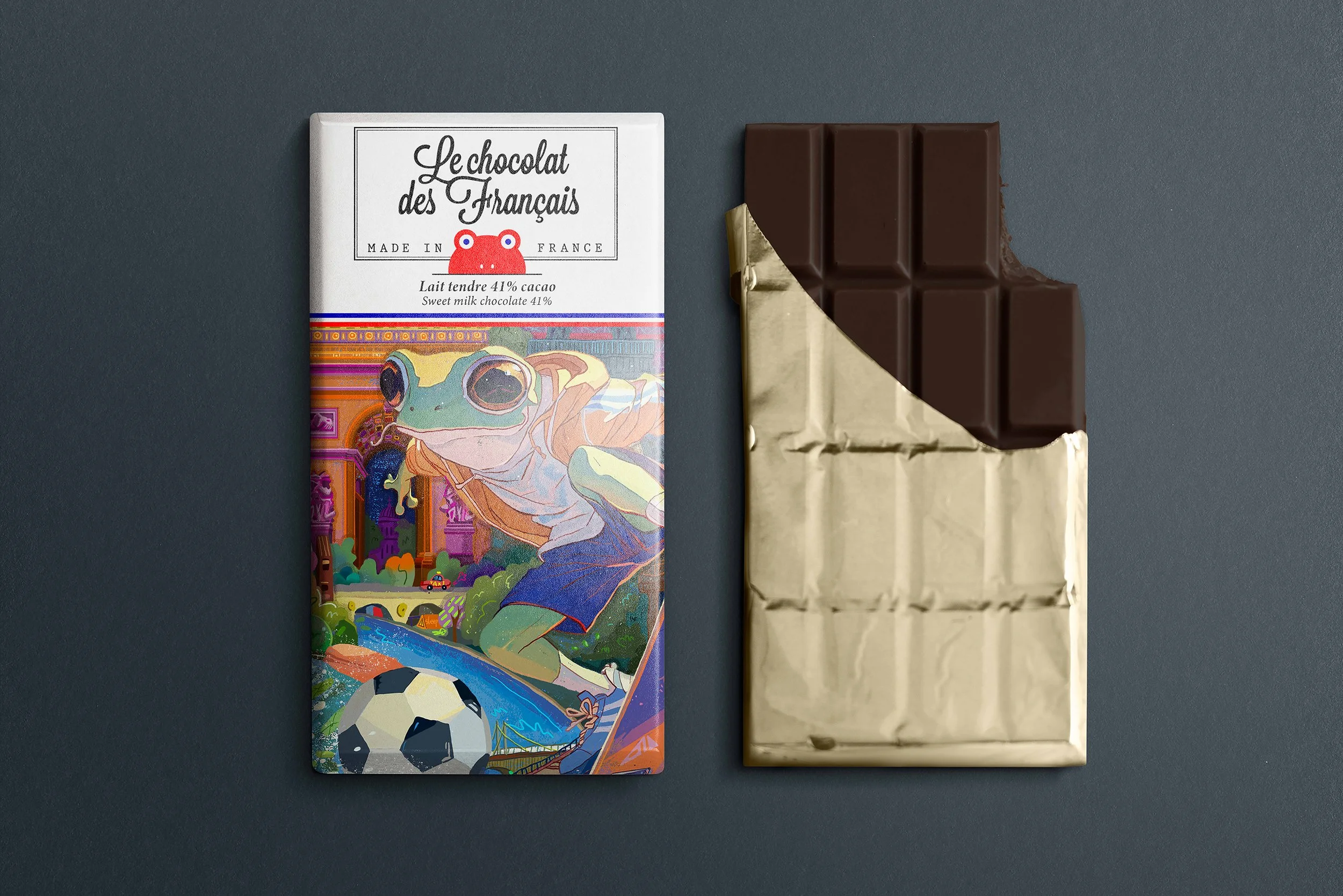 Le Chocolat des Francais is combined with the Paris 2024 Olympic Games, plus iconic landmarks such as the Eiffel Tower, the Seine and the gardens of Versailles. Special Olympic elements such as the torch relay, sporting events, opening ceremony and mascots will also be incorporated. In addition, the red frog, the distinctive emblem of this chocolate, will be the protagonist, replacing the characters in the image.